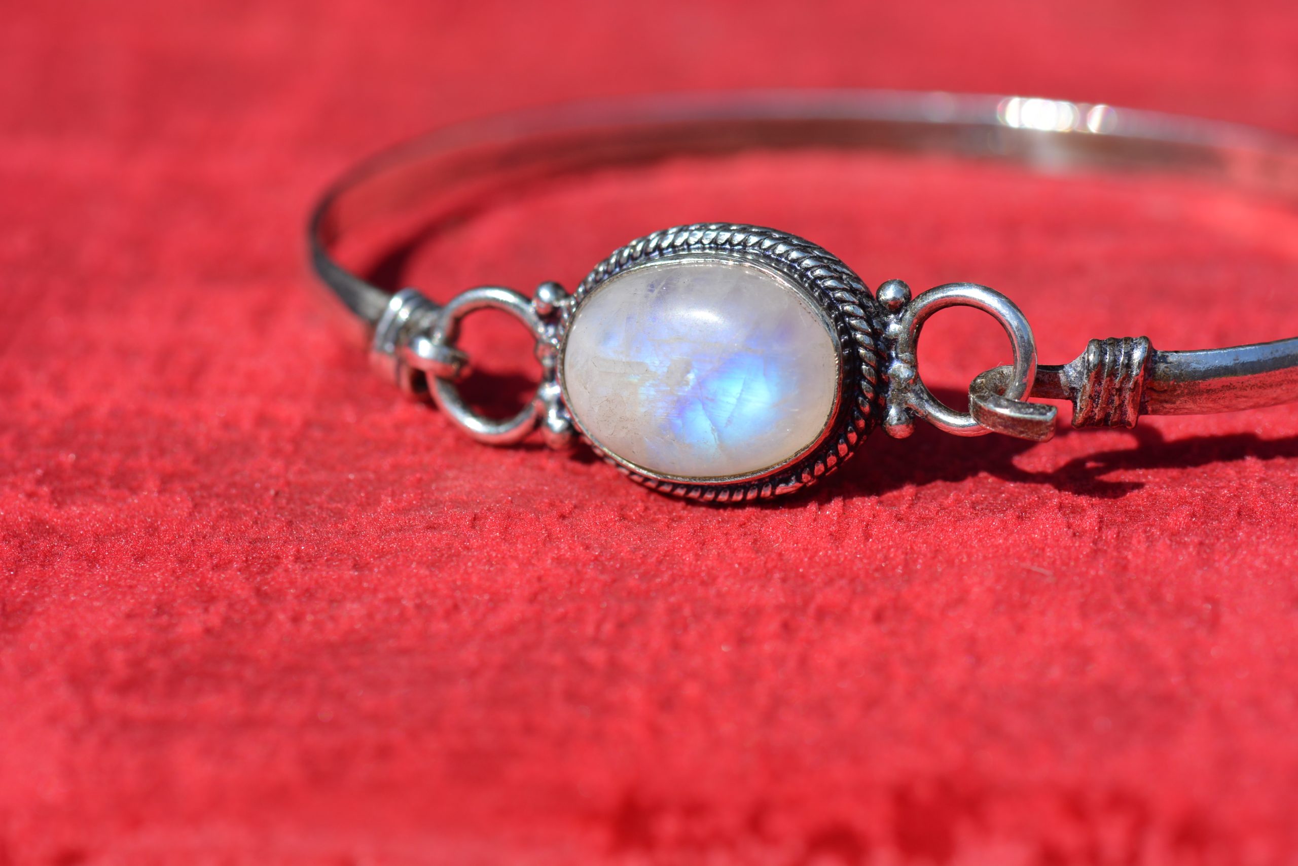 Bracelet en Labradorite Blanche monté sur Argent 925.